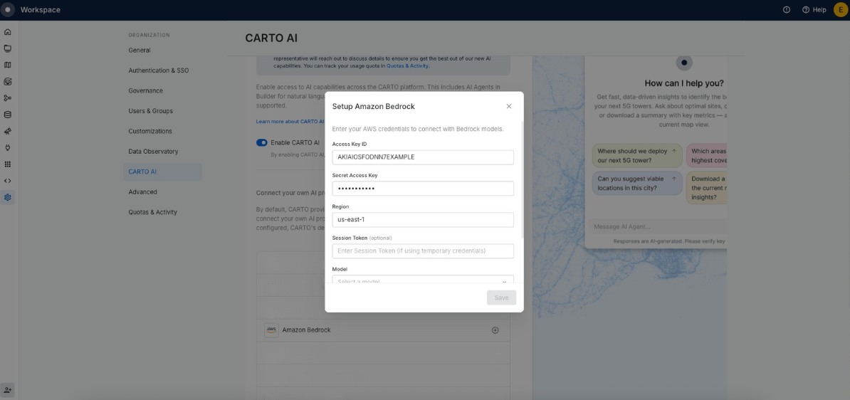 Setting up CARTO AI with AWS Bedrock is designed to be straightforward.