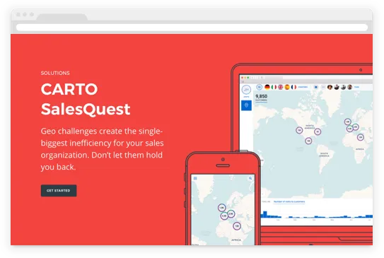 This has led customers to ask us if we would ever build specific solutions for use cases. Today with years of experience and thousands of customer applications deployed we’re excited to announce our first solution built on the CARTO platform: CARTO SalesQuest.