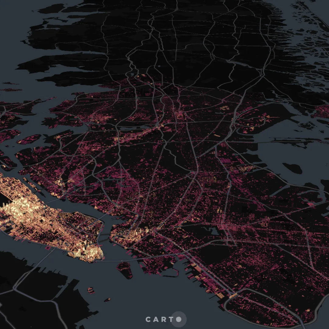 With CARTO, you don’t need to be a geospatial expert to develop a web application or build an interactive dashboard that analyzes data on a map. Creating a map leveraging CARTO’s technology and deck.gl is as simple as adding a ‘CartoLayer’ layer in your Deck class, as showcased in the snippet below. For more details on this, you can check this guide on how to build a public application.