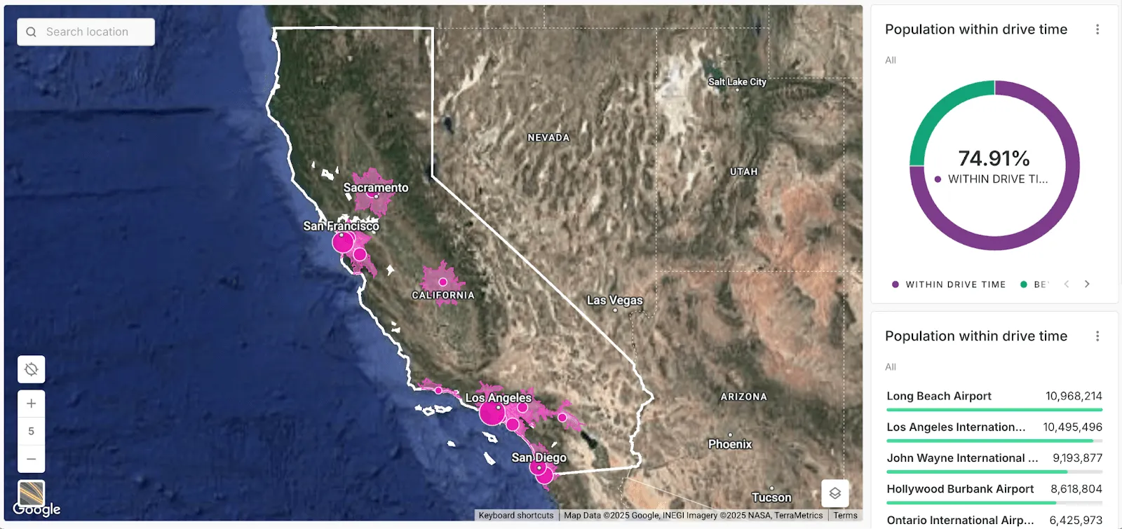 If you switch to the Parameters tab on the right of the screen, you’ll notice you can set the drive time value as anything from 10 to 60. As you change this, you’ll notice that the data on the map changes to reflect the value you’re inputting.