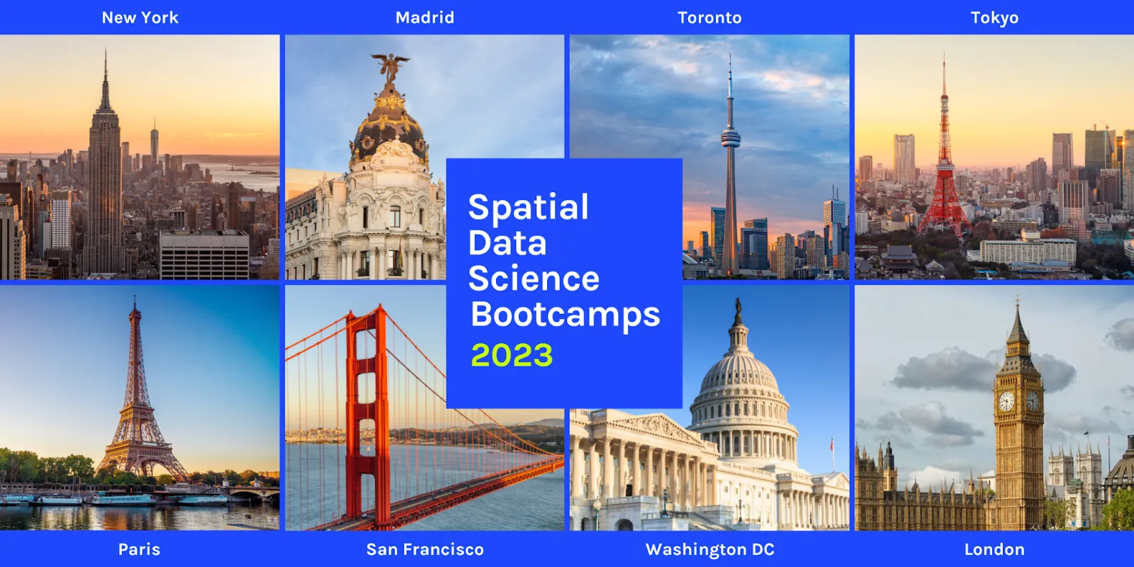We can’t wait to welcome you at a Spatial Data Science Bootcamp near you - join one in your city & sign up today!