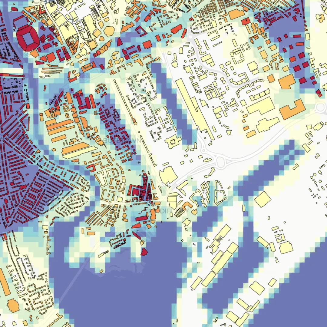 For example, the map below visualises flood risk in Cardiff, Wales. Flood risk can be seen as a "continuous" spatial phenomenon - i.e. two contiguous cells are likely to experience very similar flood risk - making raster an ideal format for this data. Learn more about how this map was created and CARTO's support for raster data in BigQuery here.
