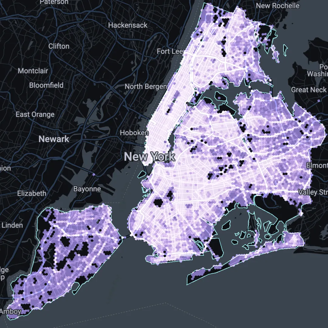 Secondly, you’ll need a dataset which you want to investigate! Any dataset with both space and time dimensions will work. In this example, we’ll be looking at spatial-temporal trends in the 1.8 million vehicle collisions which occurred in New York City from 2012-present (visualized in the map below, or open in full screen here). We’ll be investigating whether certain parts of the city experience more vehicle collisions at certain times of the day. This example is helpful for use cases such as transport planning or urban design.