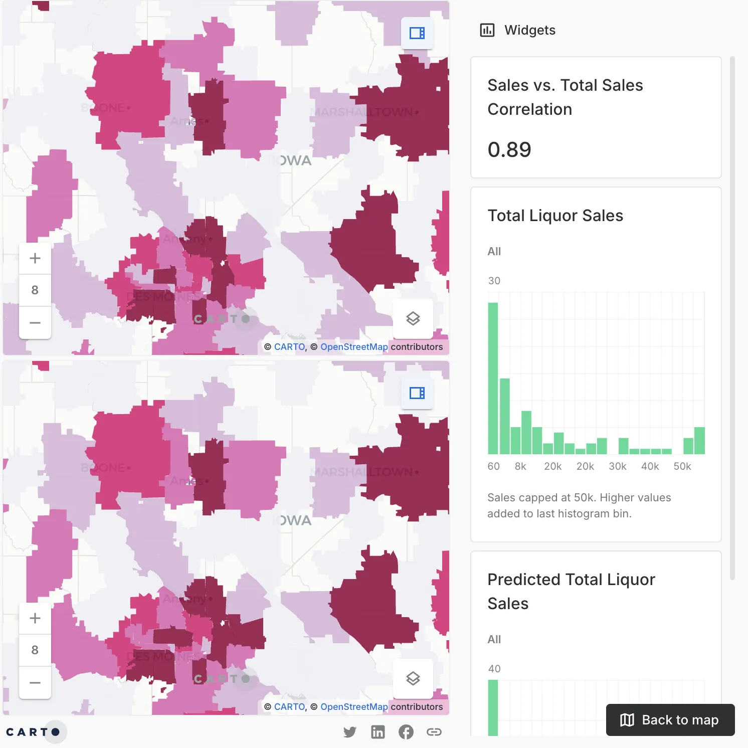 To evaluate how well these embeddings perform in a common business scenario, we used Iowa's open Liquor Sales dataset to predict total annual liquor sales by ZIP Code Tabulation Area (ZCTA) across the state.