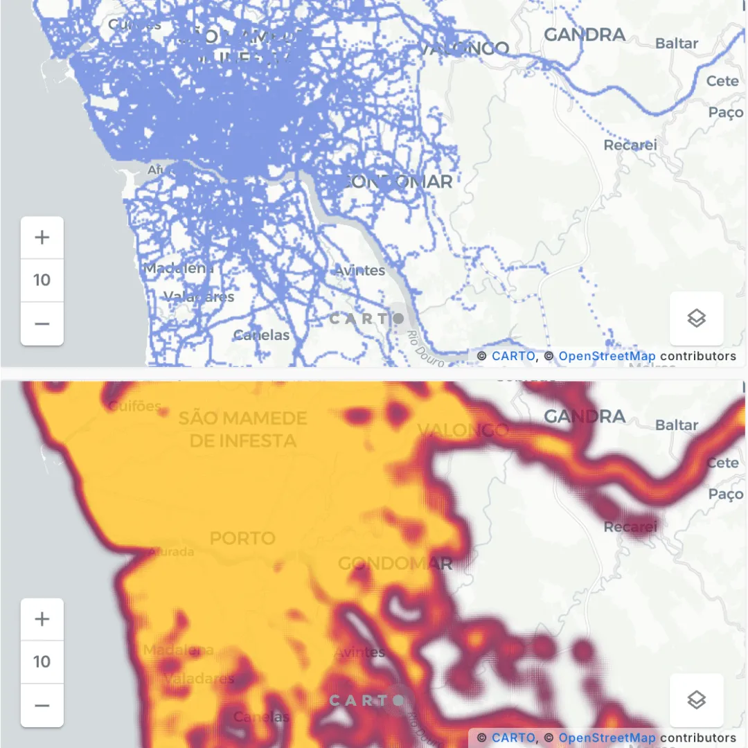 Previously, we explored how taxi trip data from Porto, Portugal, could be used to analyze mobility hotspots. By combining MovingPandas and CARTO, we demonstrated how to extract patterns and insights from extensive datasets. The taxi trip data consisted of GPS measurements taken every 15 seconds over a week.