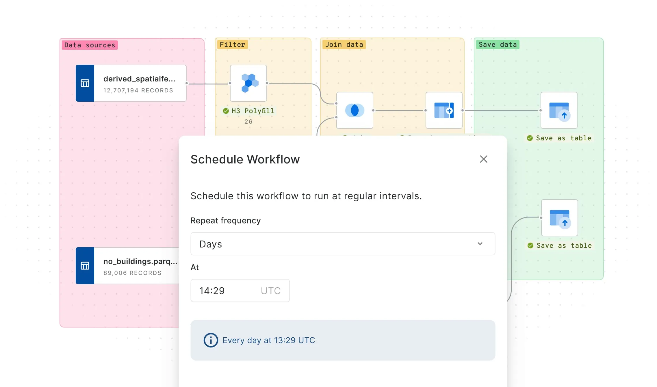 Turn complex spatial tasks into automated low-code workflows - all inside your lakehouse.