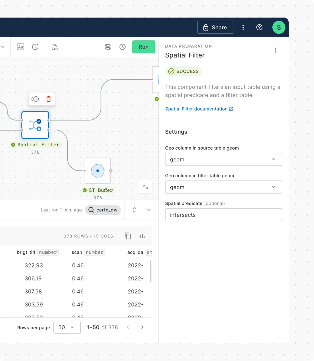 Spatial analysis shouldn't mean deep code or long timescales. Build & iterate faster with Workflows’ hundreds of low-code analytical components - from data prep to Spatial Indexes, ML, and GenAI.